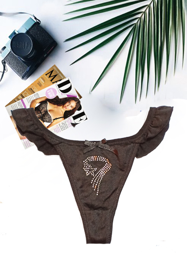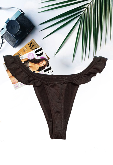 The Black Embellished Ruffle Thong is a simple thong good that works under all your clothing. This low-rise style has a sexy thong back. A decorative silver beads and ruffle charm complete the look! Match this panty to any black bra. You don’t have to dress to impress to look stylish and cute. The elastane feels great on your skin and will help prevent chaffing caused by abrasive fabrics. The thong cut goes undetected in figure hugging skirts or pants so you can wear what you want with confidence. Made with a ruffle elastic waistband and a tagless inner for added comfort and security. The soft material is colorful and vibrant with all-over prints. Available in same color and print, these panties will make a great addition to your panty collection.Important Features