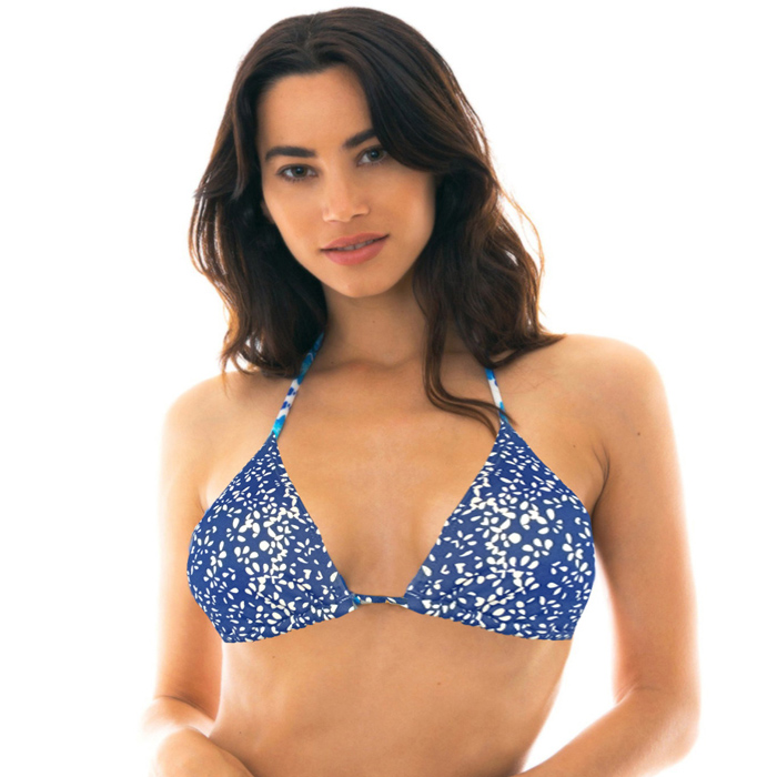 Add a fresh look to your wardrobe with this Blue White Print 2 Side Wearable Halter Bikini Top. With dark blue and white retro print, it will give you a breezy look that you can enjoy all summer long. The main amazing feature of this bikini top is that it can be worn both side, which makes it unique. Another side of the top has bright playful trendy multi colors floral print. This bikini top is ideal for the lake, beach or pool part. This bikini top has halter neck straps and back ties for a comfortable fit. It is made of polyamide to make it light and durable, as well as spandex for flexible mobility. This string bikini top is simple to wear and easy to take off. It is available in size S, allowing you to wear it both sides and enjoy two different prints in one bikini top. It can be easily paired with the matching bikini bottom. It allows you to step out this summer looking amazing. The Blue White Print 2 Side Wearable Halter Bikini Top will give you the unique look you want.- Both Side Wearable Bikini Top