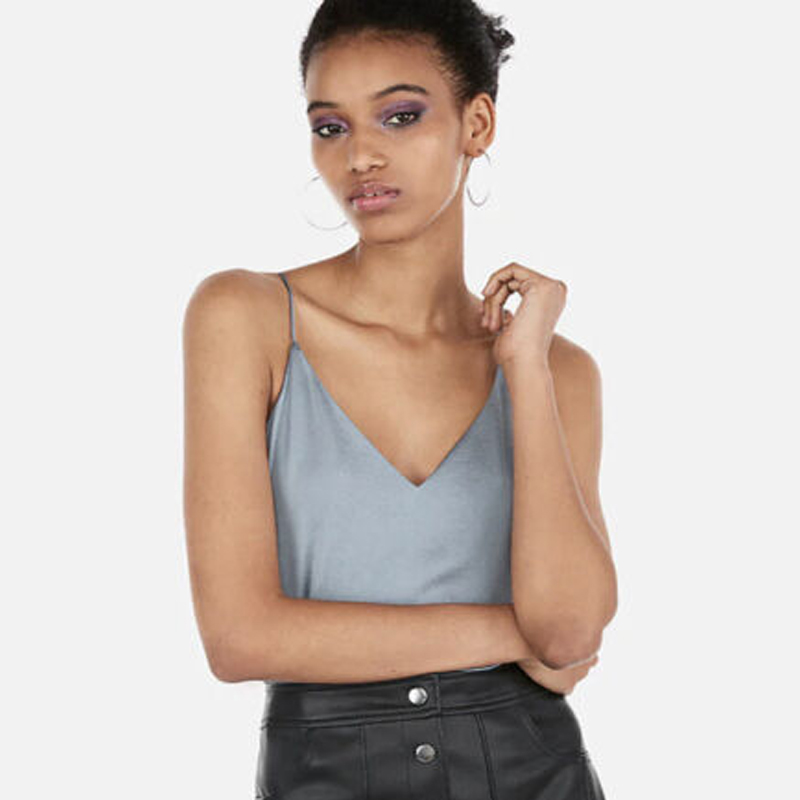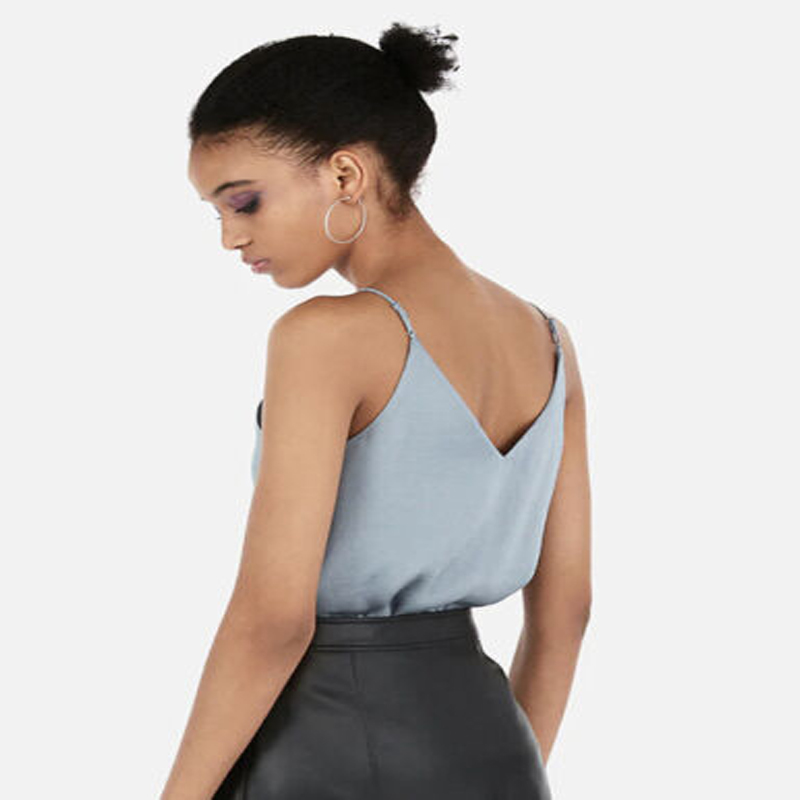 ✓Size : M, L, XL ✓SKU : ECSC4RF2W ✓Color : Grey ✓Material : Silk Satin ✓Pattern : Cami Top ✓Feature: Adjustable & Detachable Straps