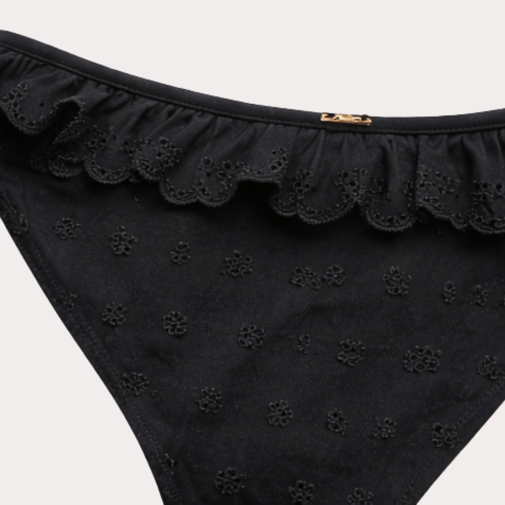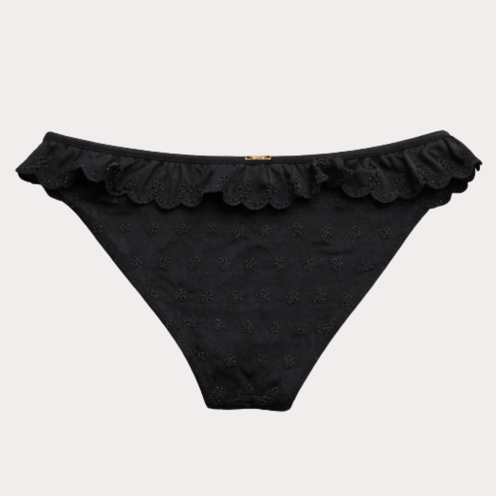 The delicate embroidered detailing adds a subtle touch of elegance, while the soft frill lace waistband enhances its feminine charm. Designed with a flattering fit, it provides the perfect balance of coverage and sophistication.