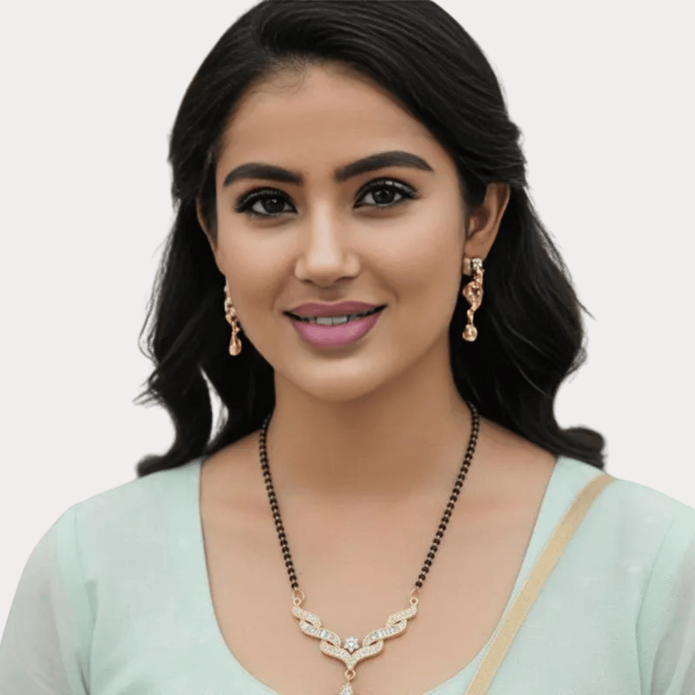 Elegant Diamond-Style Curved Pendant Mangalsutra with Black Bead Chain