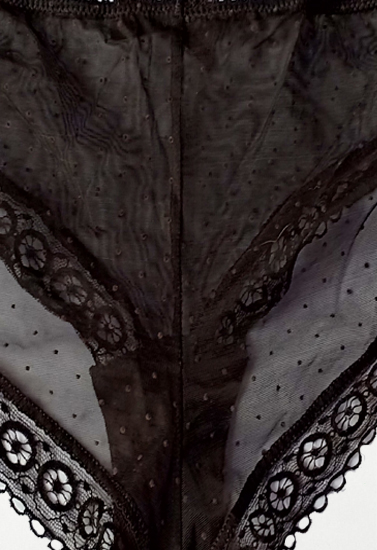 The Elegant Ultra Thin Black Sheer Mesh Lace Panty + 1 Free Bra has the perfect balance of feminine beauty and practical design. The lovely black sheer lace hipster shorty adds a dose of lace to your day. The comfortable panty has a low-rise cut with moderate bottom coverage. The back panel is seamless for a smooth look under your clothes. The floral lace front panel is backed with nude mesh that is soft to the touch. Scalloped elastic trim finishes off the look. Pair the Elegant Ultra Thin Black Sheer Mesh Lace Panty with the matching lace bra for a set of beautiful basics you'll want to wear everyday. The black sheer lace hipster is great for those days when you're feeling extra girly!- Made by polyamide and elastane material