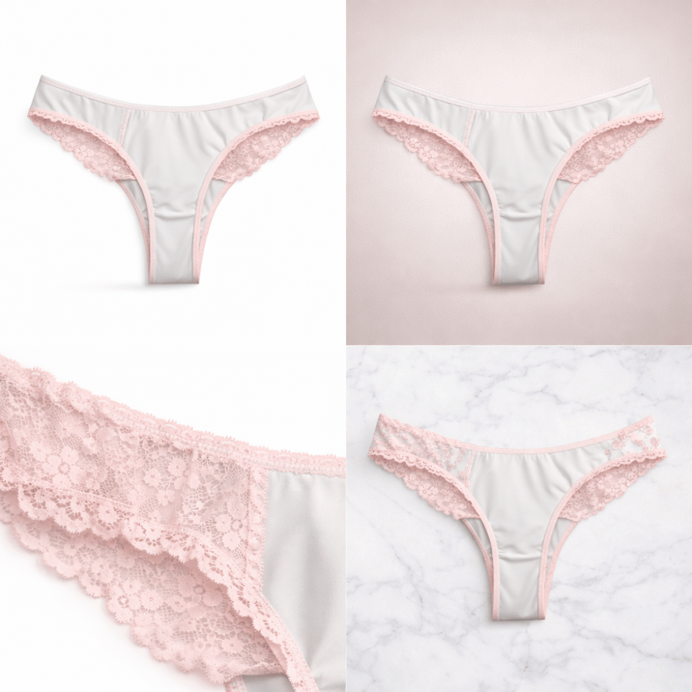 Elegant White & Blush Lace Trim Panty