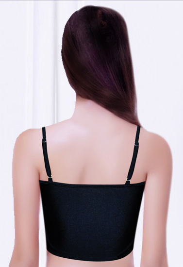 Get a versatile and unique look in this pretty Feroti Black In-Built Padded Crop Cami Top bra. This pretty camisole bra is layered and plain, beautifully expanding your wardrobe and enhancing your style. Designed in lightweight stretch fabric, the cropped women's top helps transition summer tank tops into fall, lends modesty to low-cut blouses or knits, lets you wear sleeveless dresses with confidence adding elegant style and breathable coverage without bulk. Featuring; built-in padding, no wires, spaghetti straps and straps adjust with plastic hardware. Hem falls just below bra line; elastic waist and cuffs prevent riding up or slipping. Feroti Black Built-In Padded Crop Cami Bra knows a thing or two about wardrobe necessities. Committed to designing innovative bras and accessories that fit even the most unique needs, each style is made to provide you with ingenious and chic solutions.- 80% Polyamide & 20% Elastane