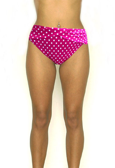 Enjoy the sun, sand and surf like a true pinup in the F&F Pink Polka Dot High Rise Plus Size Bikini Brief . With a high-rise cut and full back coverage, this bikini bottom offers the perfect amount of coverage for a plump shape. A feminine polka dot print splashes across the style all over for retro flair, making it a must-have summer staple. Every gal who likes her swimsuits classic and cute loves this brief! Pair the bottom with the matching halter bra and top for a fab throwback ensemble!- Made by nylon and elastane material