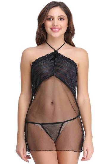 Love a little flounce? Then you’ll love the slight Flirty Honeymoon Seduction Babydoll Set. Spice things up in the Flirty Honeymoon Seduction Babydoll Set. Designed for up to all cups, this chemise features sturdy non underwires with three-part cups and 3/4 slings for added support. For even more support, this style offers a wide back band with a sexy cutout at the back. Smooth halter straps adjust in the front for a personal fit. The full slip boasts see-through mesh, a sexy full open back and a flouncy embroidered at the hem. Get the best of both worlds in the Flirty Honeymoon Seduction Babydoll Set.Features