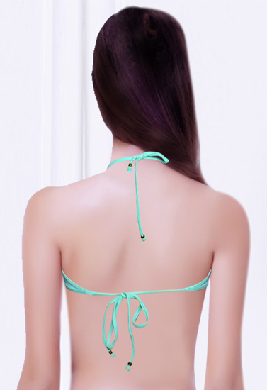 Add a bright, trendy pop of color to your swimwear collection with this H&M Light Turquoise Bandeau Halter Bikini Top. Made from a comfortable combination of 51% Polyamide, 36% Polyester & 13% Elastane. The halter strap tie around from center ring to the neck and side wings tie at back. Top has silicon wire upper bust and pleats at the bust for a comfortable, fashionable fit. It has side boning for additional support and Slot to add padding.- 51% Polyamide, 36% Polyester & 13% Elastane