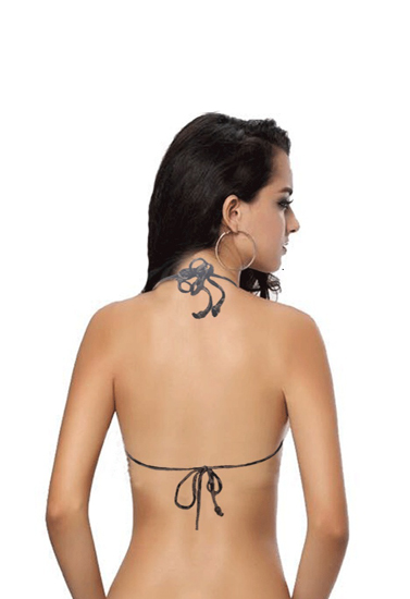 Look good while getting your suntan in this adorable H&M Sexy Leopard Print Halter Bikini Top. Bright, playful and trendy prints make this collection an ideal choice for the vibrant young woman. It is made of a soft and stretchy nylon and spandex. Two ties hold it secure, one around the neck and the other behind the back.  It features a playful black leopard design. This stylish leopard print bikini top pairs well with your favorite cover-up and cute open-toe sandals.