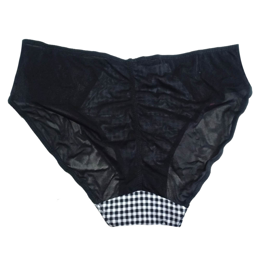 ♥Kayser Women Black Front Black & White Checkered See Through Back Hipster Panty