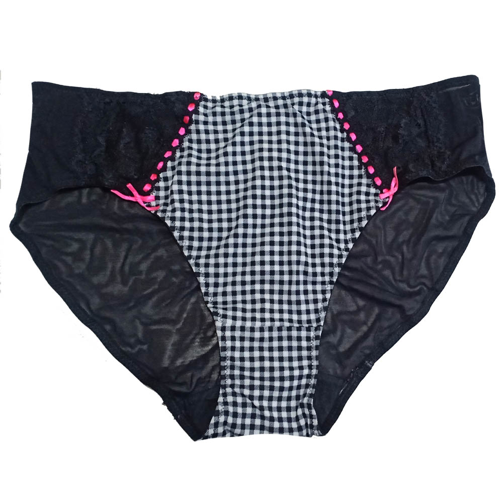 Kayser Women Black Front Black & White Checkered See Through Back Hipster Panty