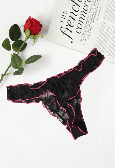 ✓Brand: Imported ✓SKU: LFFLNT01 ✓Fabric: Polyester & Spandex ✓Brief Size: XS ✓Color: Black ✓Feature: Full See thorough Details, Minimal Back coverage & Ruffle Details With Rose Ribbon ✓Pattern: Lace Thong [AnythingPopup id="3"]