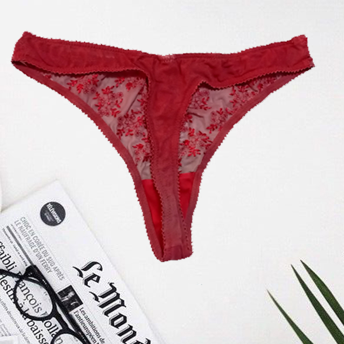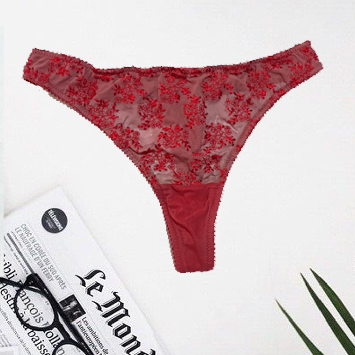 This Ladies Flirty Thread Lace Maroon Thong is a must have. The polyester blend feels great on your bottom and helps prevent chaffing. The soft silky material lays flush against your skin so that they go undetected in fitted jeans and skirts.