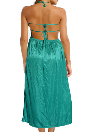 This Ladies Halter Sheer Satin Nighty With Floral Embellished Lace is a great burst of fresh and unexpected color while still looking classy and elegant. Truly a stunning piece all around. The sea green color is very beautiful, this nightwear has halter neck ties straps and tie at back band, which is surely very sexy and cool to look. Front see through floral lace design attracts a lot. Moreover, the long length of this nightwear is perfect to wear. Add this amazing piece of nightwear to your closet today. You will sure to love it.Important Features