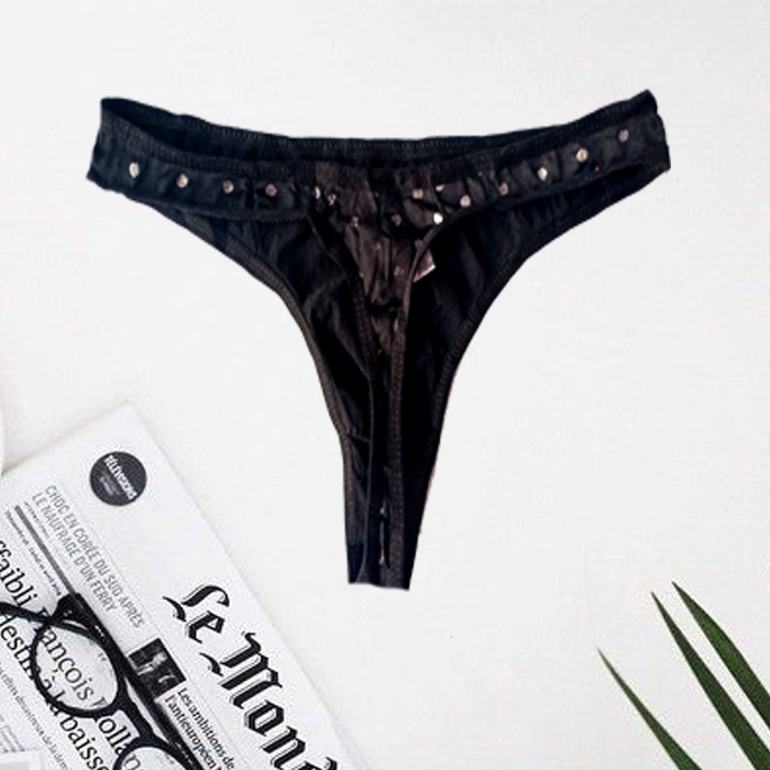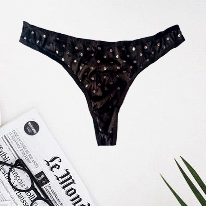 ✓SKU: lsddtp06 ✓Color: Black ✓Brief Size: M ✓Material: 90% Nylon & 10% Spandex ✓Features: Shinny Dotted Details, Minimal Coverage ✓Style: Thong Snazzyway Assured All transactions on Snazzyway are assured. We guarantee you the advertised product or your money back.