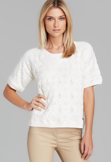 This Ladies White Crotch Knit Short Sleeve Top is one of the hottest trends of the season and combines them in one package. The body is made of soft jersey fabric with a hint of spandex for the perfect amount of stretch, while the shoulders are made of lace that not only provides a chic textural contrast, but helps you stay breezy while you're out enjoying yourself in the sunshine. A set of short sleeves and a scoop neck, which is available in white color, so you can find the perfect one for you.