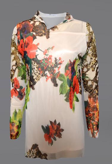 Ladies Wonderful Floral Turtleneck Long Sleeve Sheer Top