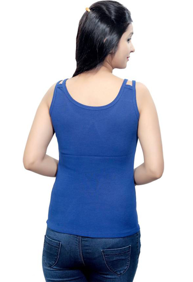 The New Double Straps Style Blue Camisole Top is a wardrobe staple you will want to have on hand. This top provides a fundamental layering piece for year-round fashion. Having this garment in different colors will make mixing and matching for your outfit of the day easier and more fun. This women's sleeveless tank is made of 100 percent cotton material that is lightweight and comfortable for all-day style. Wear it often and it will still hold its hue and shape. This top is enzyme treated to preserve its vibrant color even after multiple washings. Pair this scoop-neck fitted cotton tank with jeans, a skirt or shorts. You'll be amazed at how many ways you can wear it. Features- Made by cotton material