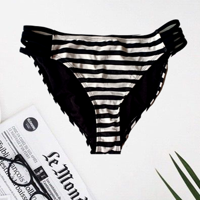 You will become more unique and fascinating just with our Now Side Straps Black & White Bikini Bottom. Mid waist design flatten tummy with moderate control features, hide your waist flabby skin immediately without a trace, make you look slimming.