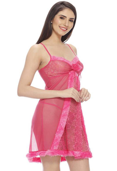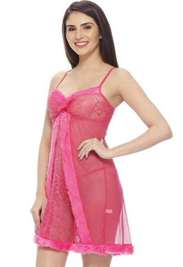 Pink Ruffled Naughty Secrets Babydoll Set is a perfect combination of a woman's body and soul, it is a reflection of the development of modern civilization,every woman deserves to have it. It not only adds the spice of you and your lover, but also improves the quality of life. This lingerie set is sure to turn heads with its slimming silhouette and easy to wear fabrication.  It’s made of soft and lightweight lace and spandex net fabric for everyday comfort, adjustable straps with back eye closure feature, this is amazing and sexy lingerie set, so this Pink Ruffled Naughty Secrets Babydoll Set is sure to become a wardrobe favorite in no time.