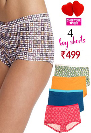Plus Size Organic Cotton Boyshort Combo PK Of 4 + 1 Free Bra