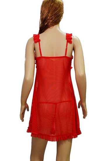 Add some color to your nights with this Red Sexy Seduction Wide Strap Camisole Nightwear . It is super comfortable to wear. Easy to slip on for a sophisticated elegant evening. The fabric slides smooth on your skin heightening sensitivity & the side slits let you move freely. The lurex threads woven in the lace add a hint of subtle shimmer complementing the pretty trinket at the front. It's perfect for your wedding night or honeymoon. The cute big satin red bows looks very beautiful and awesome. This sexy Red Sexy Seduction Wide Strap Camisole Nightwear is perfect for a romantic night. It has gorgeous sheer floral lace cups that will show the perfect amount of skin.Important Features