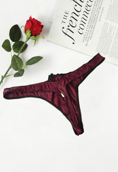 You'll love this Secret Possessions Burgundy Silk Thong! This Secret Possessions Burgundy Silk Thong is easy on the eyes and easy to wear. The all-over soft lace on the back is smooth against the skin and goes virtually undetected under fitted clothing. This Secret Possessions Burgundy Silk Thong is lightweight and comfortable with a little bit of sexy mixed in. Feel elegant wearing this tanga thong underneath your clothes and confident when pairing them with a lace bra for intimate moments. The attached side embroidery and net lace back will make you feel beautiful all day long.Important Features