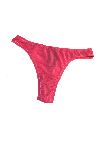 This pink thong is comfy enough to be an everyday favorite and naturally sexy in silky-soft fabric trimmed. The poly/elastane blend material feels great on your bottom and helps prevent chaffing. The thong cut moderately covers your backside and sits right on your waistline with a covered elastic band for added comfort. The super soft fabric lays flush against your skin so that they go undetected in fitted jeans and skirts.