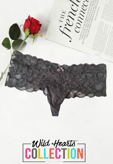 ✓SKU: STCHWGTP02 ✓Fabric: Polyamide & Elastane ✓Brief Size: M ✓Color: Grey ✓Features: See Through Lace Details, Minimal Back Coverage, Wide Waistband With Attached Luxury Pendent ✓Pattern: Lace Thong