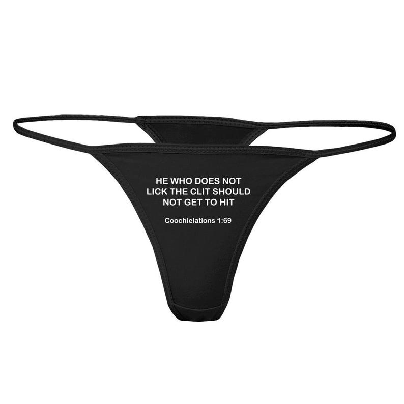 Sexy saying printed g string– Sexy black thong. Drive any man crazy with this comfortable, sexy  thong panty. When any horny straight male sees these sexy panties, he will blow his nuts! They also make a great gag gift for a Bachelorette party, Anniversary, Valentines, Bridal shower, Christmas present, Birthday present or Wedding gift. Or a gift for yourself and one in which the man thinks they are actually a gift for him! Win/Win
