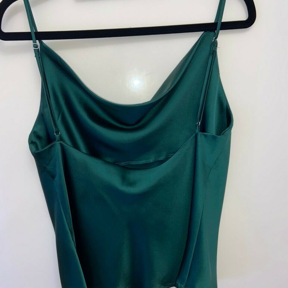 Silk Satin cowl neck green cami top