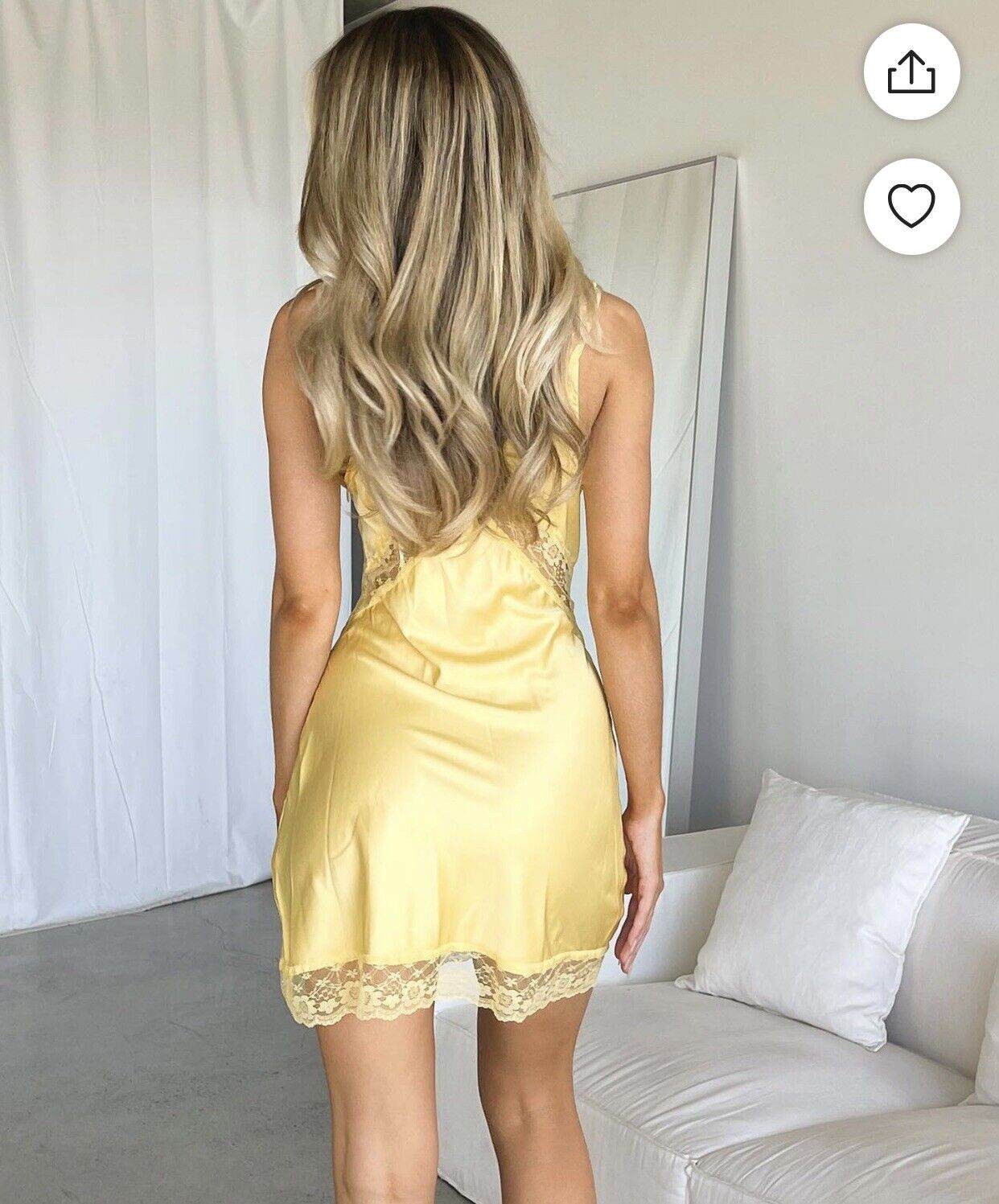 Silk Satin Slip Yellow Lace Trim Dress   Silk Satin Slip Yellow Lace Trim Dress