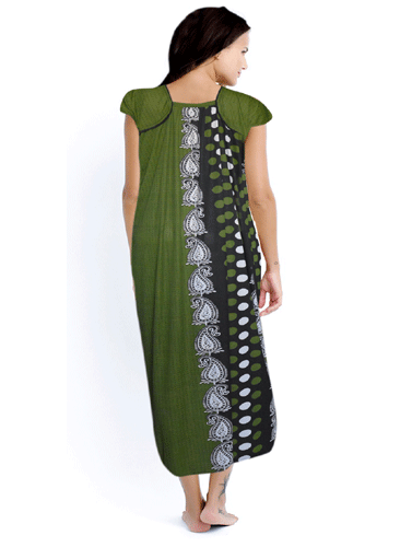 This  Dark Green Printed Full Length Nighty is ideal for those in-between spring time evenings, this comfortable nightgown features pretty print all over the gown circling the high Square-neckline and cheerful prints throughout.