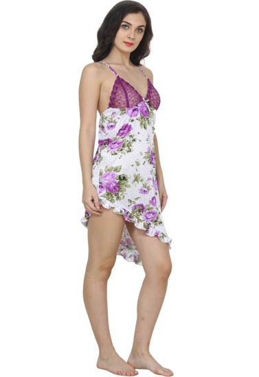 ✓Brand : Imported ✓SKU : SSOPBLMBLS02 ✓Fit: Regular Fit ✓Size: One Size( Xs to M) ✓Color : Purple ✓Feature : Floral Print, Lace Cups At Front, Adjustable Shoulder Straps ✓Pattern : Babydoll Sleepwear