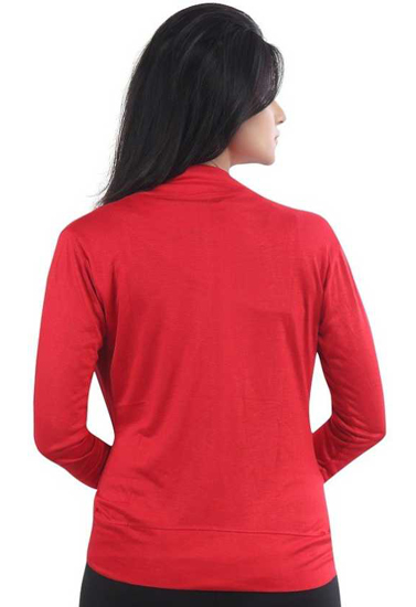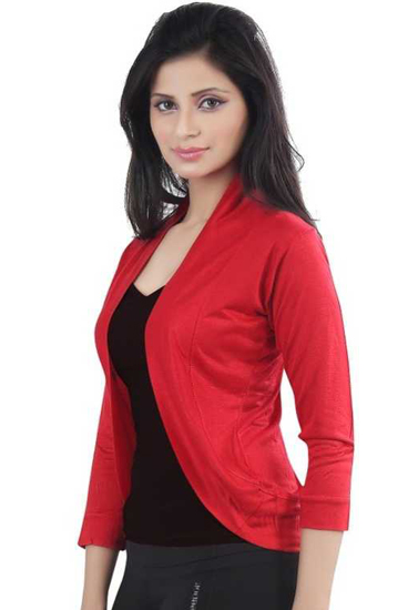 Solid 3/4 Sleeves Red Shrug is lightweight and perfect for lounging around the house or staying comfortable at the office. Since this piece is made up primarily of viscose it's so soft. Pick the colours which best suit your wardrobe and enjoy!Pair it up with  jazzy skirt, Shorts, Capri or Jeans to complete the party look.