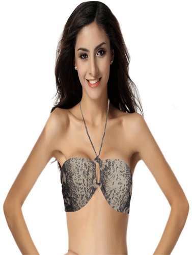Bring the bohemian trend to the beach with the TCM Snake Print Bandeau Beach Bikini Bra with sexy snake print . The hardware front detailing creates a flattering ruching over the bust while built in foam cups accentuate your shape. This sexy bandeau bikini top can be worn strapless when sun bathing or with removable straps for extra support when cooling off in the pool.