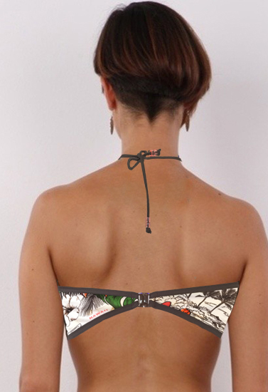 Want to wear sexy and stylish fashions without sacrificing support? The TRiBORD Floral V-Wire Halter Bandeau Bikini Top that won’t let you down. This style is designed to hold even the heaviest busts while shaping beautifully. The wire free non padded cups feature unique flexible cup boning that helps keep breasts in place. The cups are smooth and molded on the outside for easy wear with a seamed cup lining for shape. A wide power mesh back and banded design guarantees that this halter bra will stay up even if you’re dancing all night long. Removable straps are included with the bra, so you can wear it again as you want.Important Features