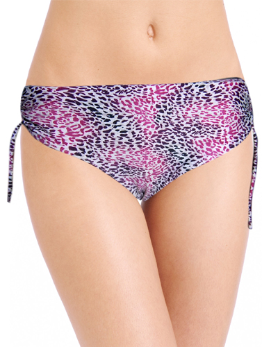 Relax in your exotic paradise in the White Diamond Leopard Print Bikini Bottom with its leopard print in strokes of pink ,dark brownand white hues. This low-rise pant has classic tie side fastenings that allow you to adjust the fit. Complete the beach look with the matching Snazzyway Beach Tri Top