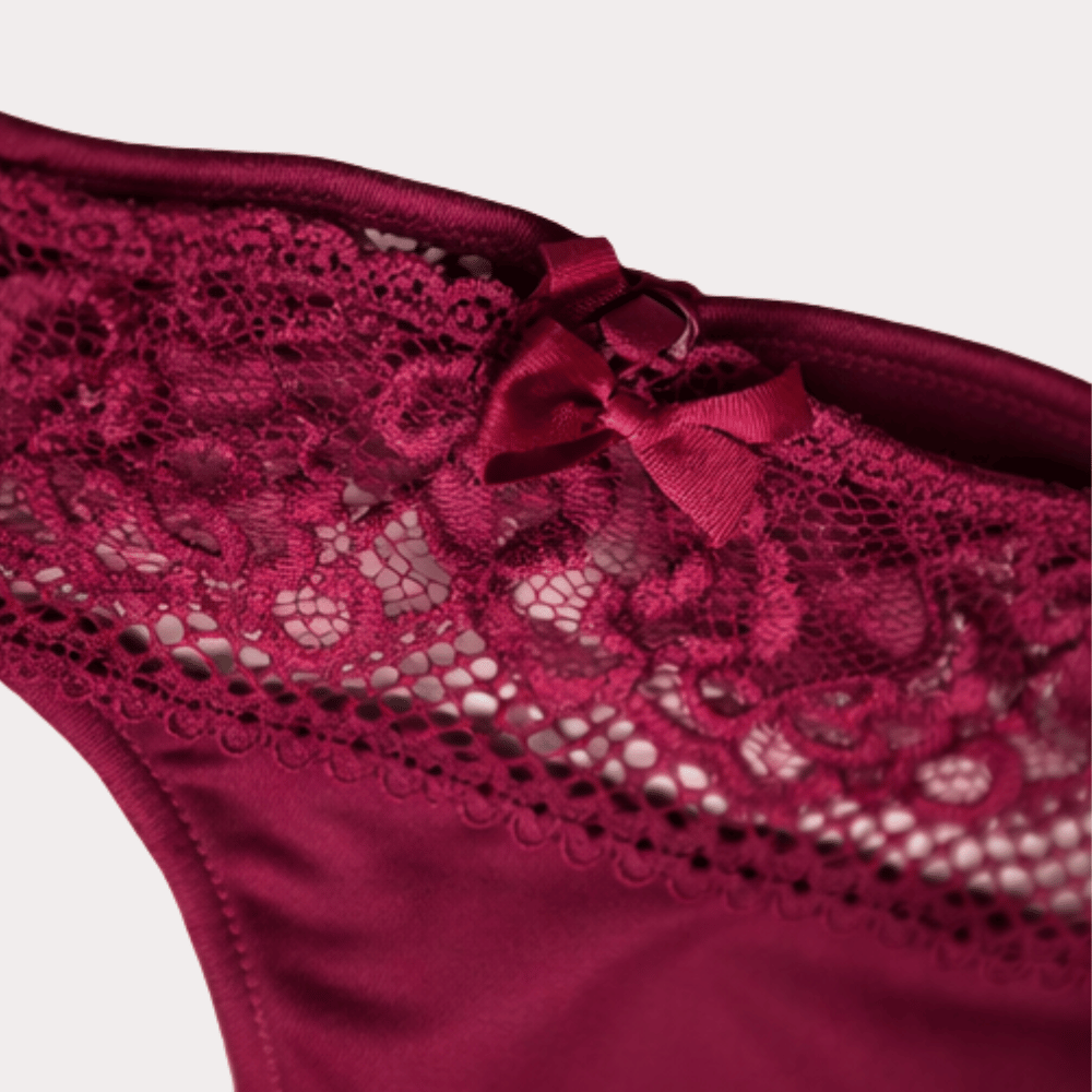 Wine Red Lace Thong Panty with Bow Detail – Soft Satin Finish