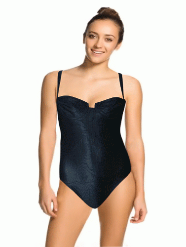 Women's Plain Black One Piece Swimwear is shaped with a cut-detail at the front, a sweetheart neckline and a ruched center panel that slims the tummy. The straps and foam cups offer you support and shaping allows you to take on any water sport without worries.