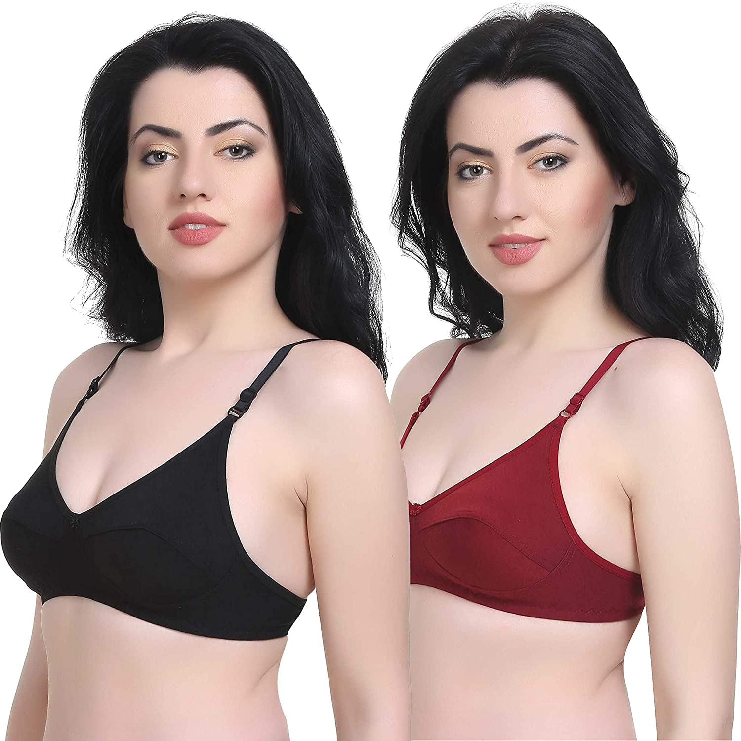 "Women's" T-Shirt Cotton Hosiery Black & Red Bra ( Pack of 2)